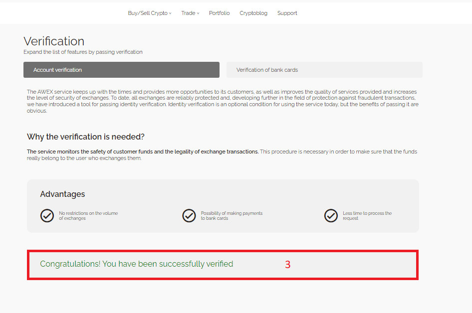 In this section, the AWEX exchange user can submit documents for identity verification (KYC verification).